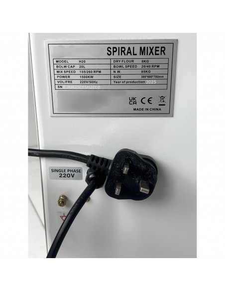 20L spiral mixer ideal for bakeries, pizzerias, and commercial kitchens