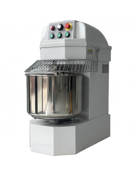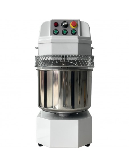Equipped with a 40-liter stainless steel bowl capable of handling up to 18 kg of flour, this mixer delivers excellent dough texture and uniform kneading. Its dual-speed mixing system and rotating bowl allow precise control over the mixing process, adapting easily to different dough types and recipes.