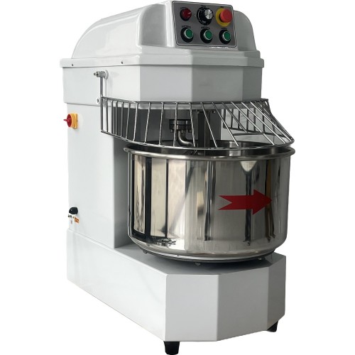 Featuring a robust 50-liter stainless steel bowl with a 25 kg flour capacity, this mixer ensures consistent, perfectly kneaded dough every time. Its dual-speed operation and rotating bowl system provide superior control and uniform mixing, while the powerful 1.5/2.4 kW motor guarantees reliable performance even during intensive use.