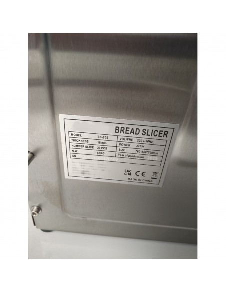 This professional bread slicer is designed for bakeries, cafés, and commercial kitchens that demand consistent, high-quality slicing. Constructed with a durable stainless steel body, it produces uniform 18mm slices, yielding 20 slices per loaf with precision and reliability.