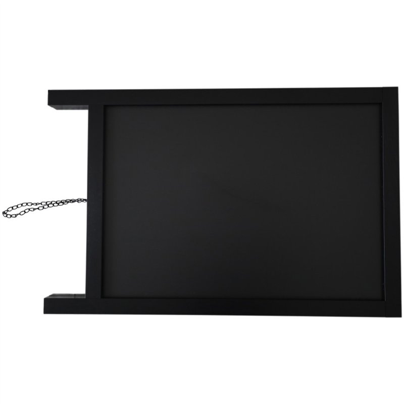 The foldable frame with chain support ensures stability during use and allows for quick setup and compact storage. Suitable for indoor and covered outdoor use, this chalkboard combines practicality with an elegant presentation.