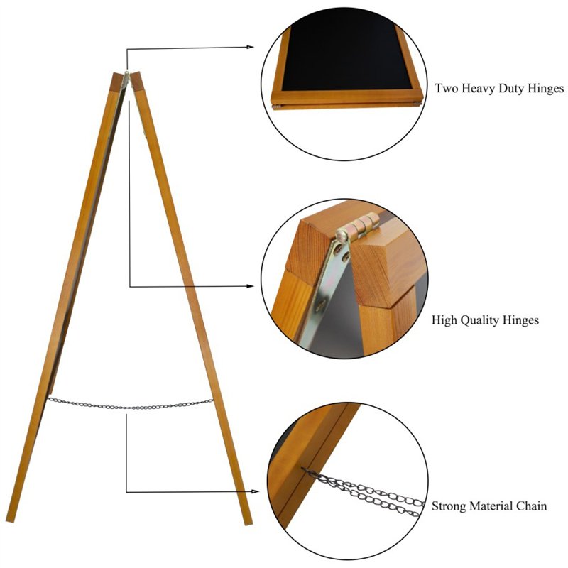 The A-board design allows for maximum visibility from both directions, making it ideal for placement outside cafés, bars, restaurants, and retail stores. A foldable frame with chain support ensures quick setup, stability during use, and convenient storage when not in use. Designed for indoor and covered outdoor areas, this board combines elegance with practicality for everyday commercial use.