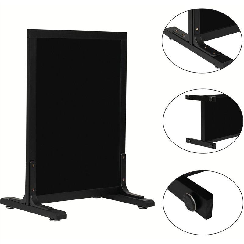 Display your menus, daily specials, or promotional messages with style using this freestanding pavement chalkboard. Its sturdy black wooden frame and smooth, non-magnetic writing surface provide a sleek, professional look, while the heavy-duty base ensures excellent stability. Perfect for indoor use and sheltered outdoor spaces, this chalkboard is a versatile solution for cafés, restaurants, and retail environments.