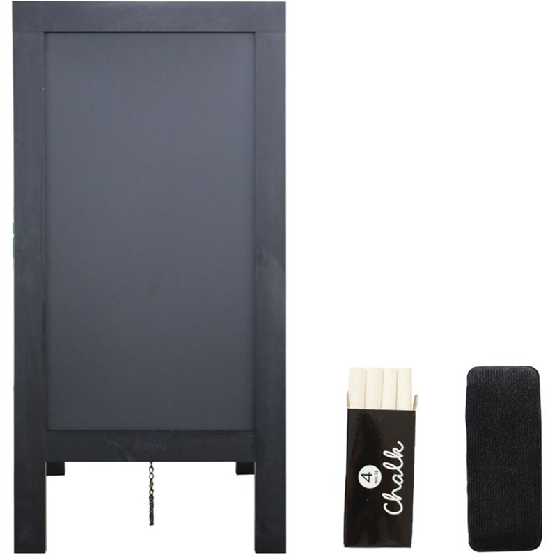 Enhance your space with this freestanding pavement board, featuring a durable black wooden frame and a smooth magnetic writing surface. Perfectly suited for chalk, liquid chalk pens, and magnetic accessories, it allows you to write messages or display menus and posters with ease.