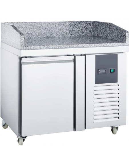 The granite worktop with backsplash and side panels offers a durable, hygienic surface — ideal for pastry work, bakery tasks, and general food prep. The stainless steel interior, digital thermostat, and ventilated condenser system ensure dependable performance, even during intensive use. Eco-friendly R600a refrigerant and cyclopentane insulation guarantee low energy consumption and a reduced environmental footprint.