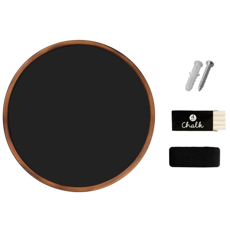 Wall-Mounted Circle Chalk Board with Magnetic Surface Brown Frame ∅24" (610mm) | Stalwart DA-GWA302