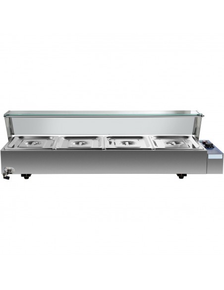 Commercial Bain Marie with Glass top sneeze guard 4xGN1/2 | Stalwart DA-HBM24