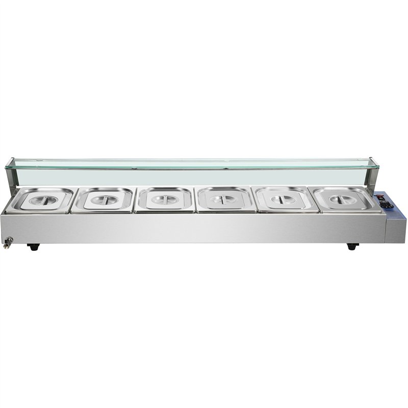 Commercial Bain Marie with Glass top sneeze guard 6xGN1/2 | Stalwart DA-HBM26