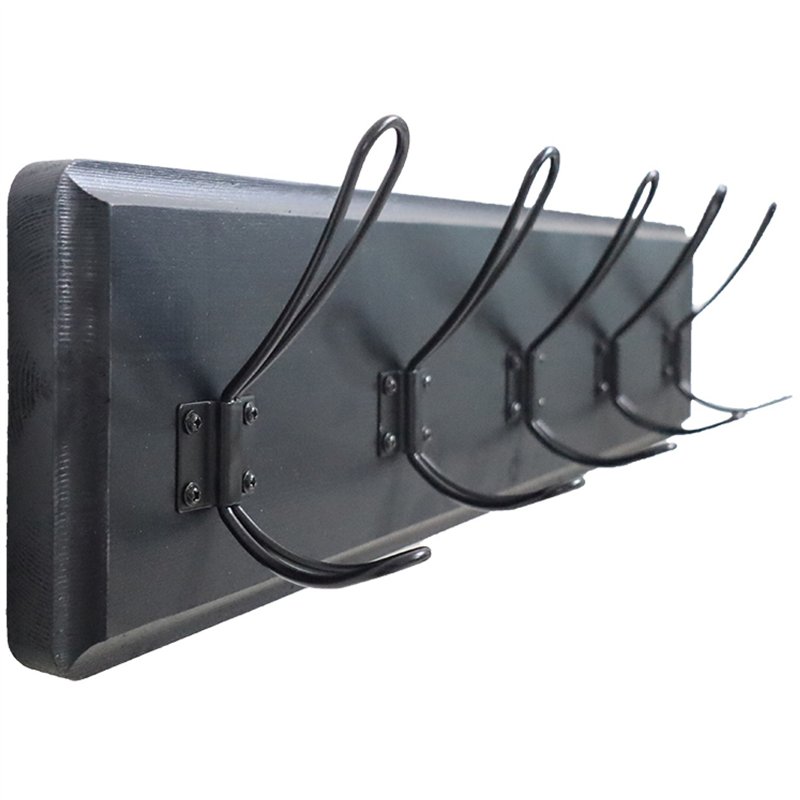 Rustic Wall Mounted 24" (610mm) Coat Rack with 5 Rustic Hooks Solid Pine Wood Black | Stalwart DA-GWA316