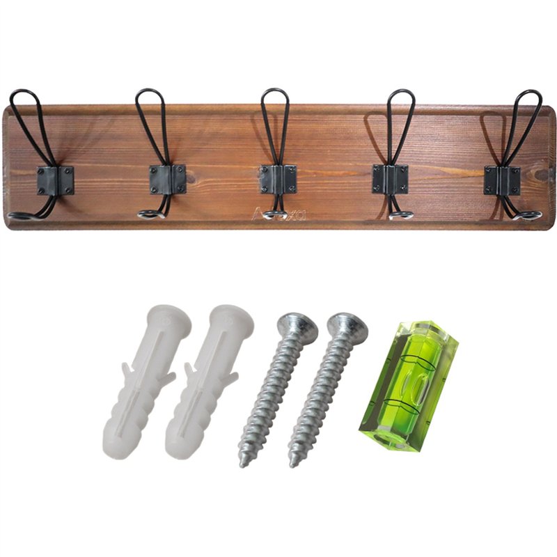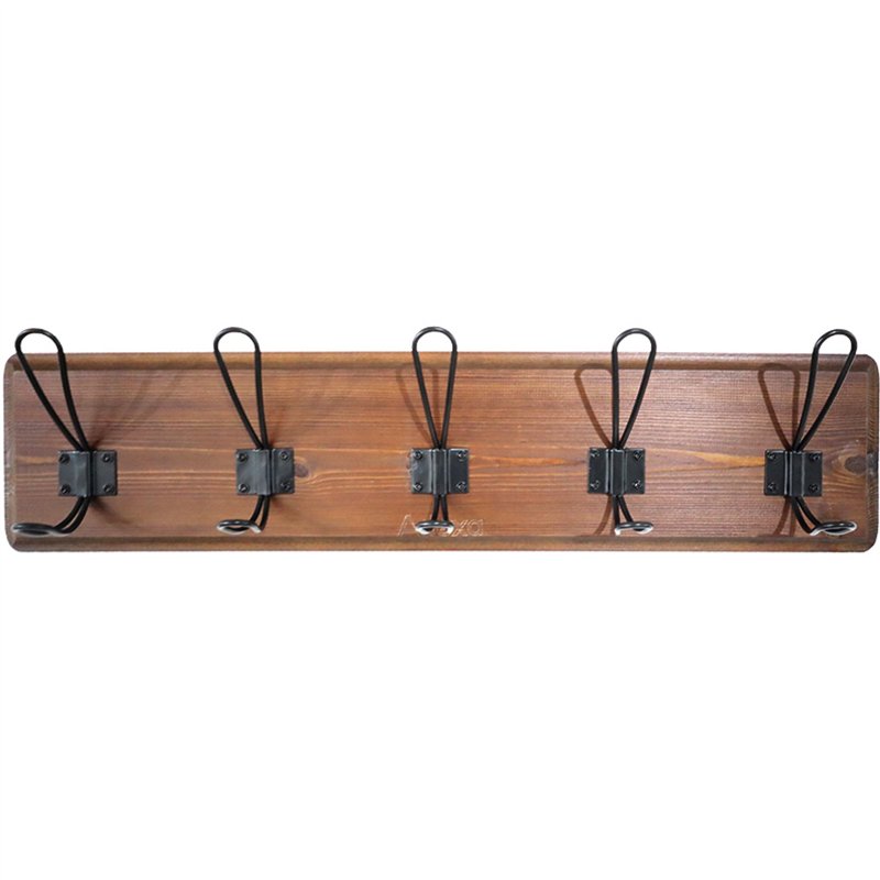 Bring warmth, character, and practicality to your home with this beautifully crafted rustic wall-mounted coat rack. Made from solid pine wood with a classic brown finish, it combines natural charm with everyday functionality. Five sturdy black metal hooks provide ample space for coats, hats, scarves, or bags, making it an essential addition to any entryway, kitchen, bathroom, or mudroom.