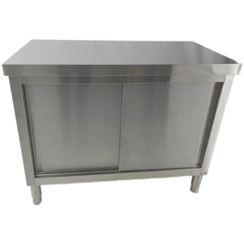 Manufactured from high-quality stainless steel, this workbench delivers exceptional durability, corrosion resistance, and hygiene — ideal for demanding daily use. The reinforced 50mm-thick top bench provides a sturdy and reliable surface for food prep or kitchen equipment, while the smooth-sliding double doors give quick access to a spacious internal storage area, keeping tools and supplies neatly stored out of sight.