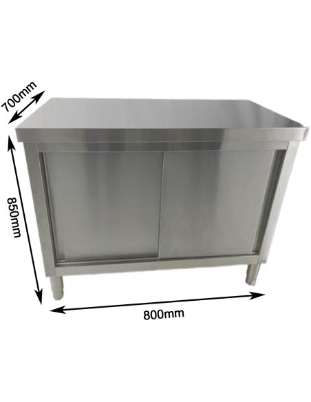 Commercial Stainless Steel Sliding Door Work Table Cabinet 800x700x850mm | Stalwart DA-QNH322