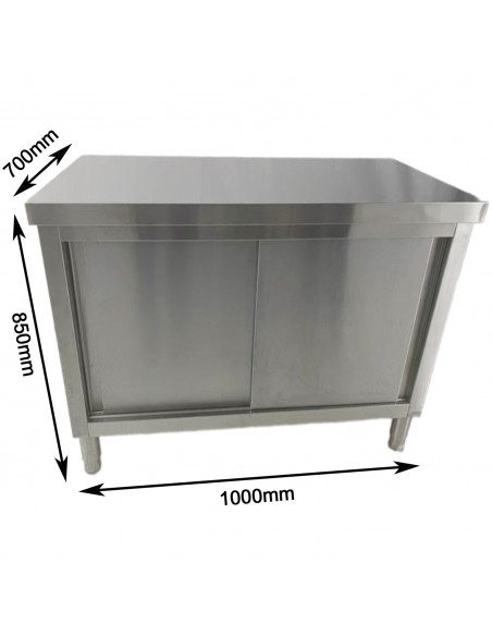 Commercial Stainless Steel Sliding Door Work Table Cabinet 1000x700x850mm | Stalwart DA-QNH324