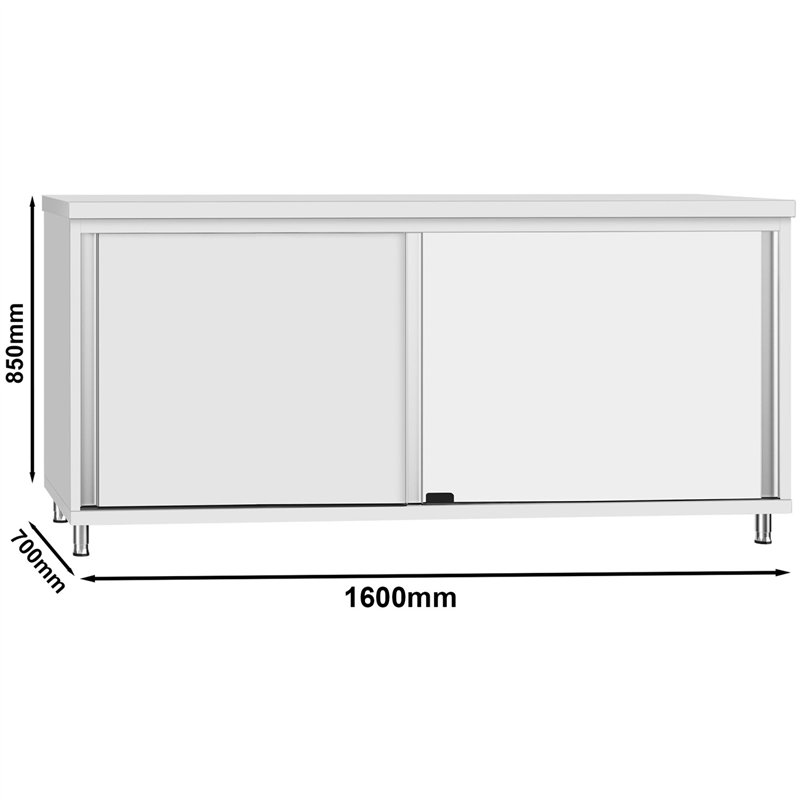 Stalwart QNH330 Stainless Steel Work Table with Sliding Doors – 1600 x 700 x 850 mm