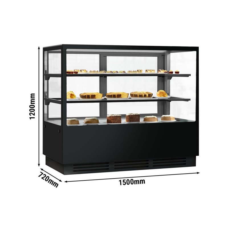 Cake Counter Straight Front 1500 x 720 x 1200mm 2 shelves Black base LED