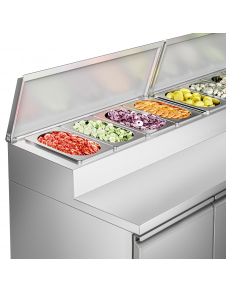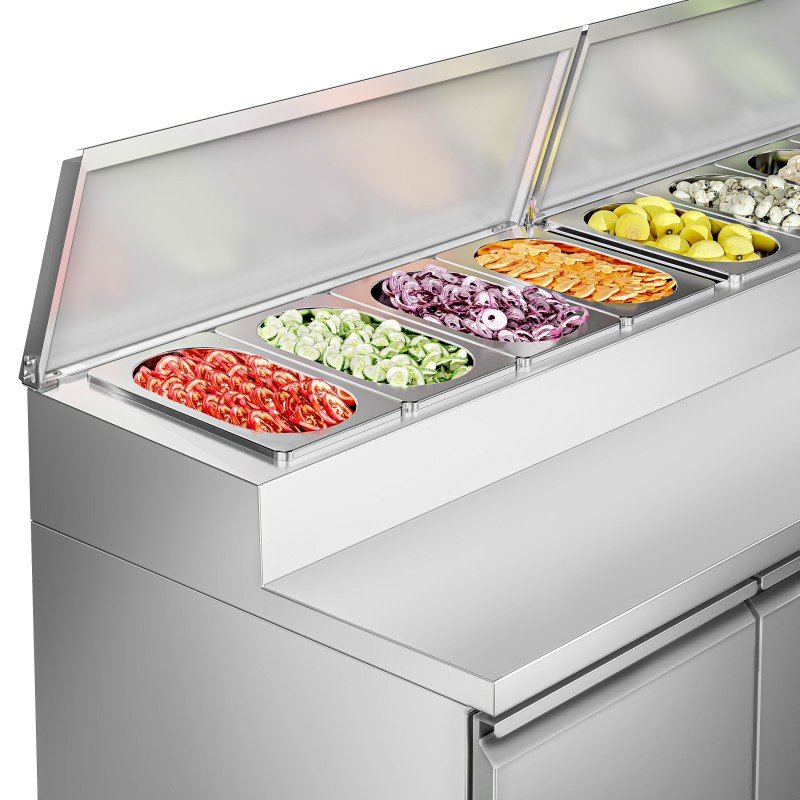 3-Door Prep Counter Pizza & Salad Fridge with 8× GN 1/3 Pans – 1795×700×1085mm
