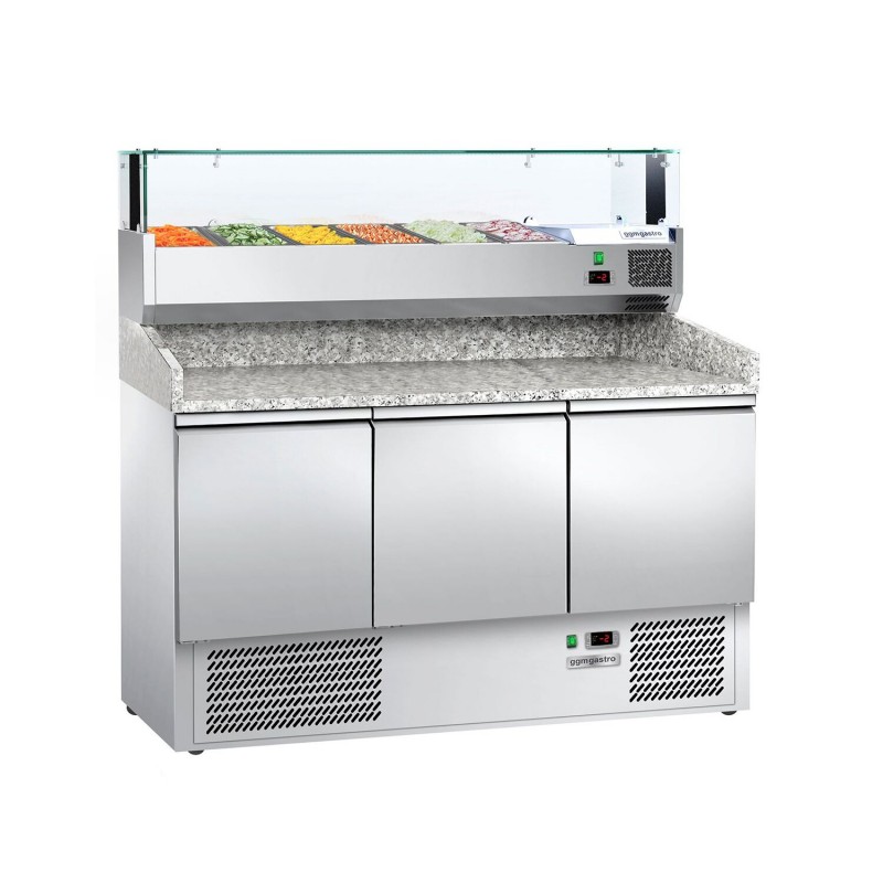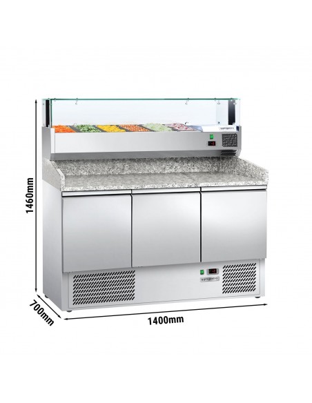 Stalwart Pizza & Salad Preparation Counter – 3 Doors, Granite Top, Chilled Display (6 × GN 1/4) – 1400×700×1460 mm