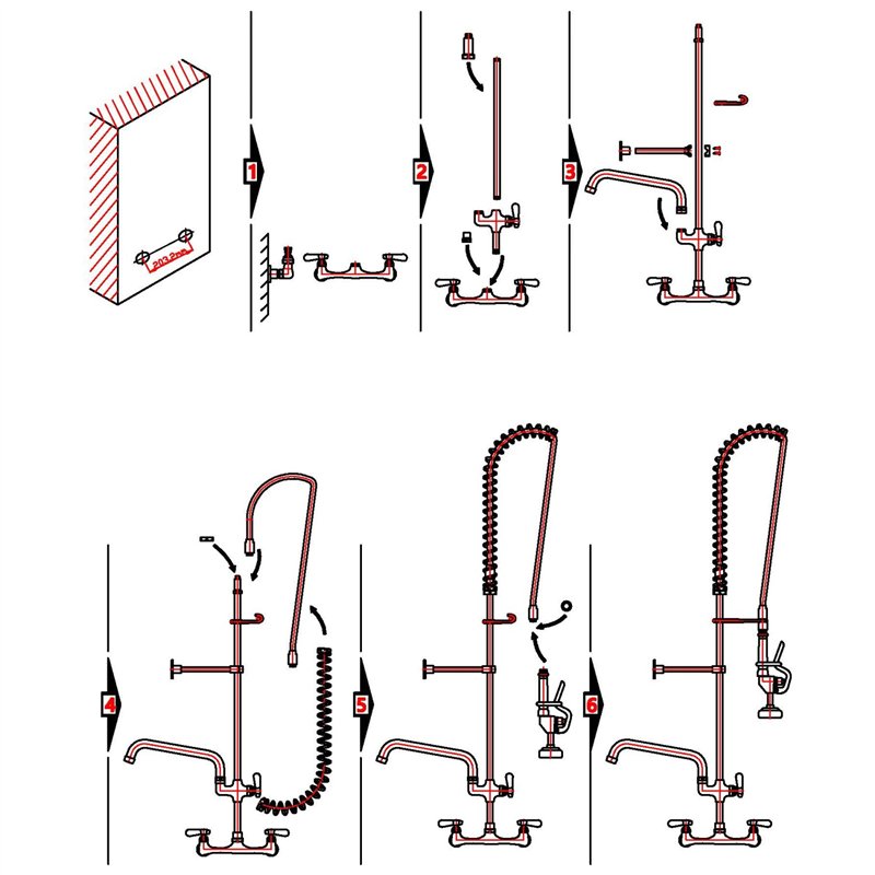 This 8" center wall mounted pre-rinse unit is engineered for commercial kitchens that require both a high-performance pre-rinse sprayer and a versatile add-on faucet. Built on a standard-duty base, it features an 18-inch (457mm) riser pipe and a durable 44-inch (1118mm) flexible stainless steel hose paired with a high-efficiency spray valve for fast, effective rinsing during busy service hours.
