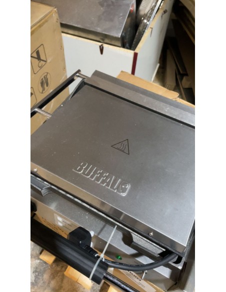 Great for busy hotels and restaurants this heavy duty single contact grill from Buffalo is fast to heat up and has variable temperature control for maximum functionality so is ideal for cooking burgers steaks and paninis. Robustly designed it has cast iron plates and a satin stainless steel finish (scratch-resistant) to ensure long-term use. The addition of a programmable timer and audible alarm then makes monitoring cooking in a busy kitchen much easier.