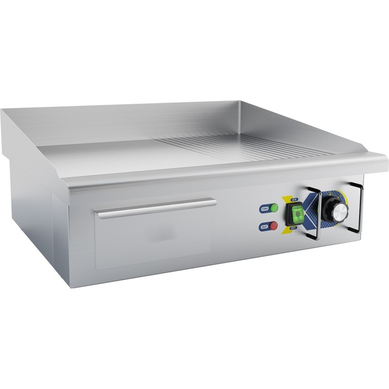 The Stalwart DA-EG5482 electric commercial griddle delivers powerful, reliable performance for busy professional kitchens. Designed with a spacious 560 × 500 mm steel cooking surface, it combines both smooth and ribbed sections—ideal for preparing a wide variety of dishes throughout breakfast, lunch, and dinner service.
