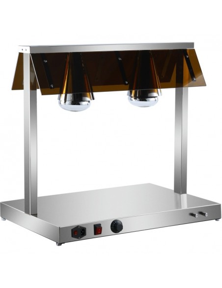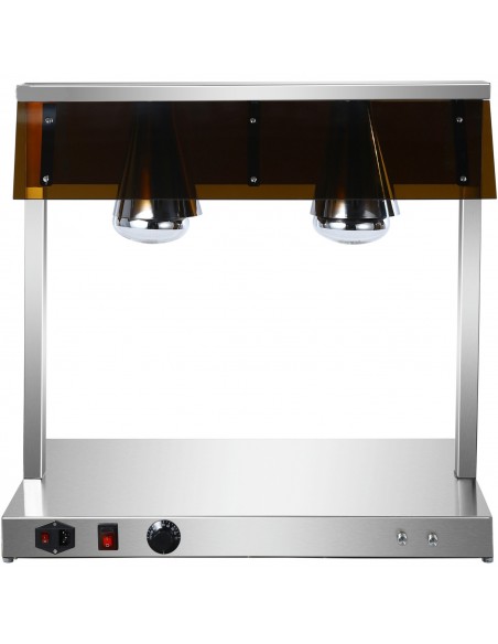 Buffet Food Warmer with Gantry Stainless steel warming plate 2 infrared lamps Sneeze guards 2xGN1/1 | Stalwart DA-HTC2FA