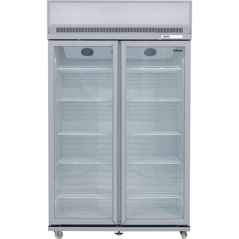 Commercial Display Refrigerator Upright 1020 litres Double Hinged glass door LED canopy Grey | Stalwart DA-SCM1127