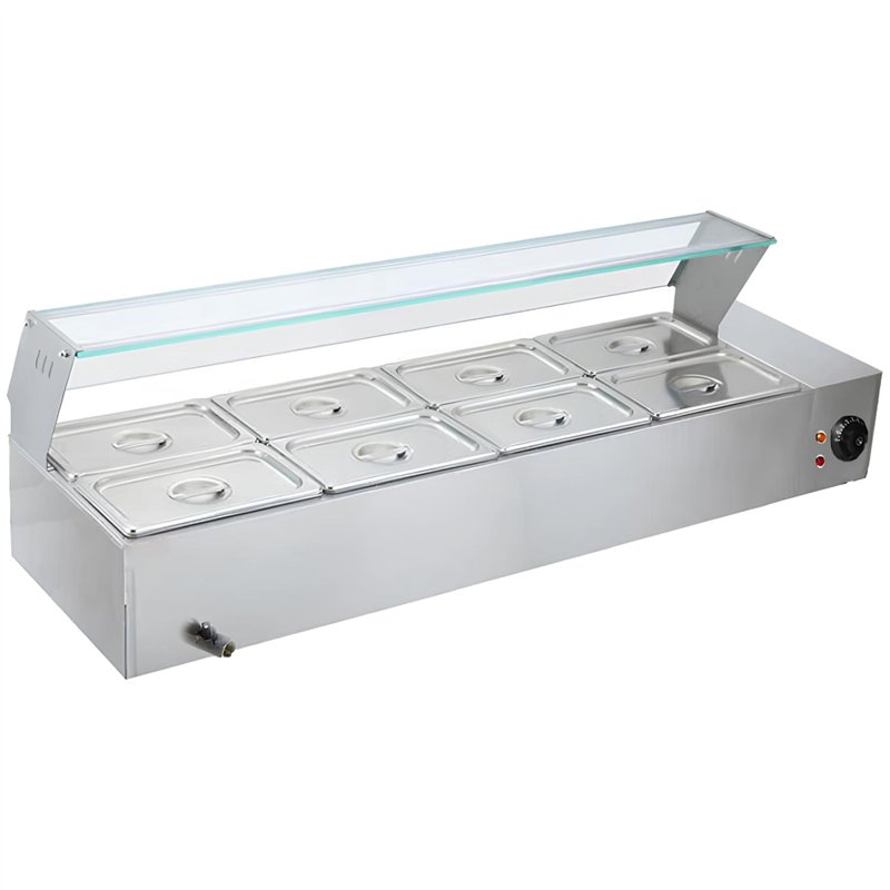 8-Pan Bain-Marie with Glass Guard – Ideal for displaying and warming multiple dishes simultaneously