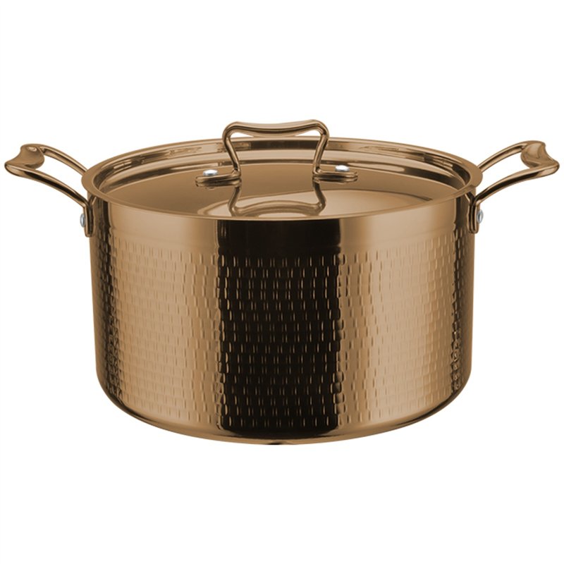 Hammered Triple-Layer Stainless Steel Casserole ø280×160mm 9.8L Copper Finish | Stalwart DA-C0310009C