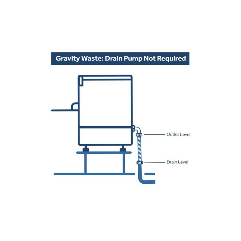 Clear height for glasses: 250mm. A perfect commercial glasswasher if you're looking for the perfect price/performance ratio for a pub, restaurant, bar or cafe. This pub glass washer is for professional catering use and this bargain price beats any clearance offer. This machine disposes of waste by gravity. The function of a gravity drain is to release dirty water in a drain located under the water outlet. This machine requires the drain to be below the unit as there is no pump mechanism to discharge the wastewater. If your drain is at or above the water outlet of this machine, a drain pump scheme is necessary.