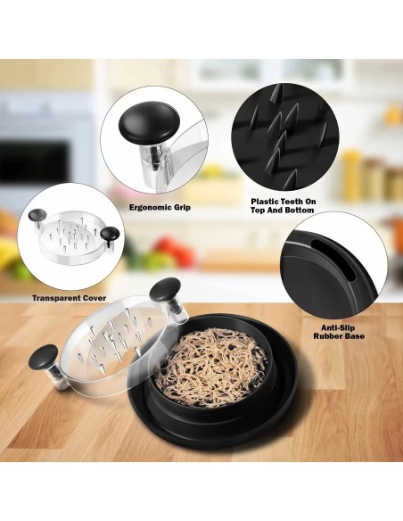 Quick Meat Shredding – Easily shred cooked chicken, pork, beef, or other meats with a simple twist motion.