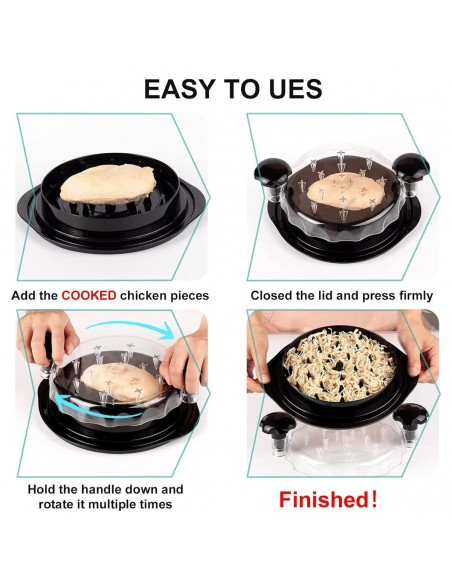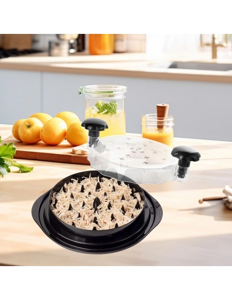 Make meal prep quicker and easier with this large chicken shredder tool, designed to shred cooked meat in seconds. Simply place the meat inside, close the lid, and twist—perfect for preparing shredded chicken, pork, beef, or even pet food.