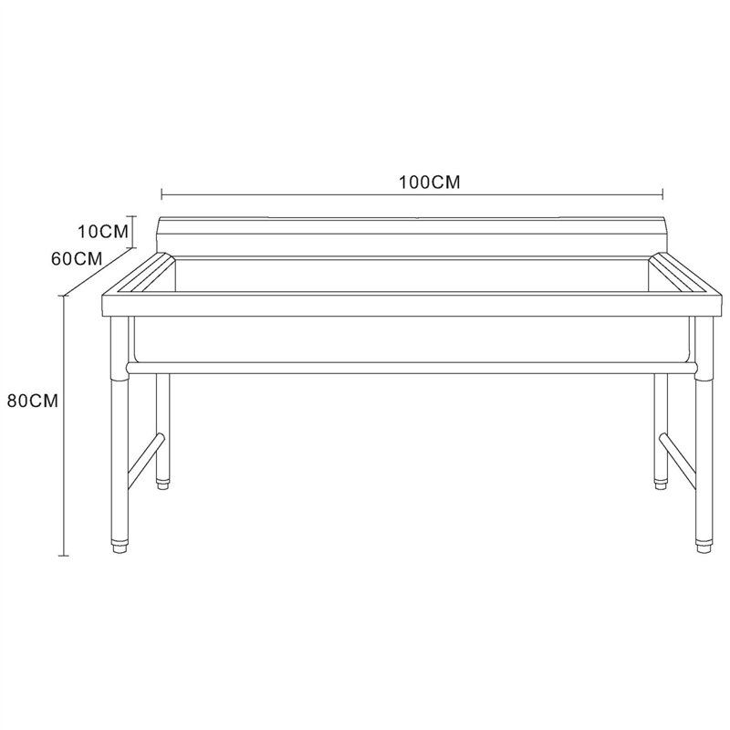 The sink features a generous 100 × 60 cm working surface with a deep bowl, making it ideal for washing large pots, pans, and kitchen utensils. An ergonomic 80 cm working height ensures user comfort, while the integrated 10 cm backsplash helps protect surrounding walls from water splashes and maintains a cleaner workspace.