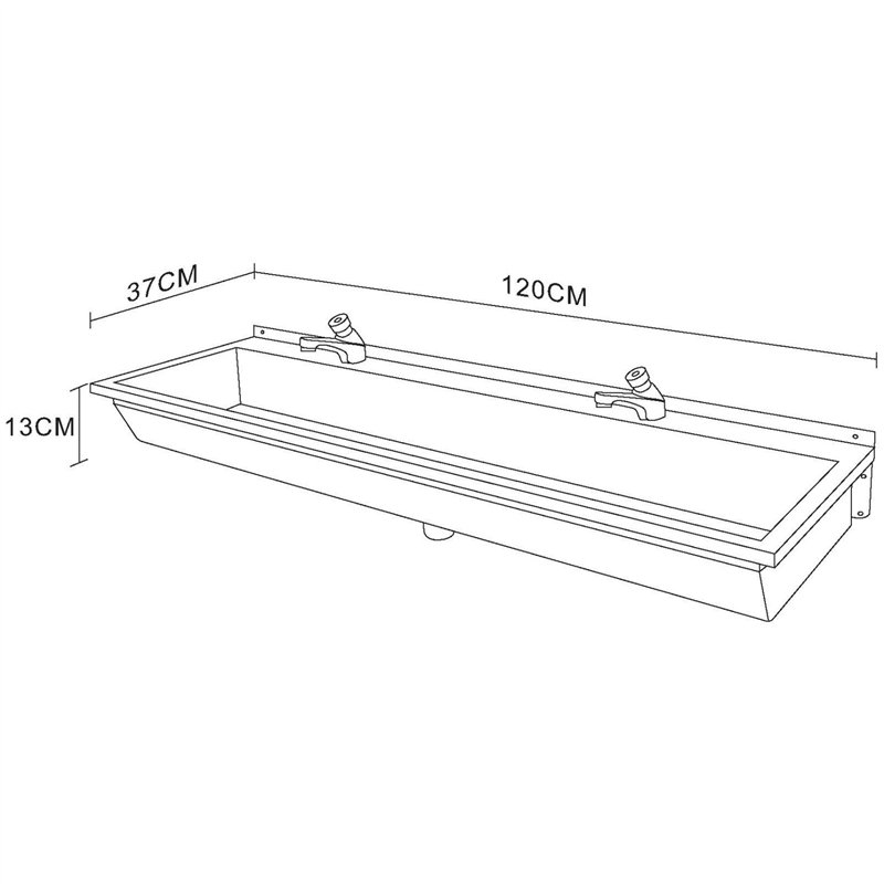 With a total length of 120 cm, the trough provides comfortable handwashing space for two users, making it ideal for professional kitchens, food processing facilities, workshops, factories, and other hygiene-sensitive areas. The wall-mounted design helps save valuable floor space while maintaining a clean and organized work environment.