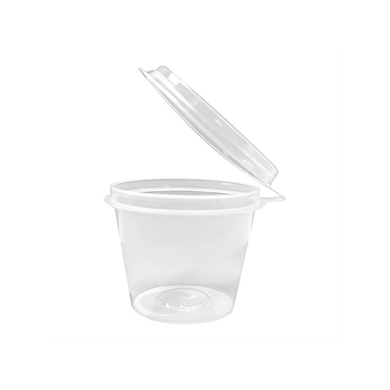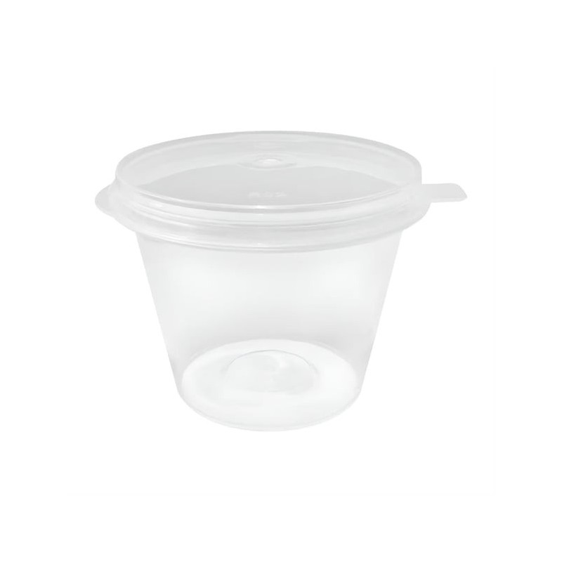 The clear polypropylene construction offers excellent visibility, allowing customers to easily identify contents and enhancing the presentation of colourful sauces and sides. Each pot features an attached, tight-fitting lid that helps maintain freshness while protecting food from leaks and external contamination.