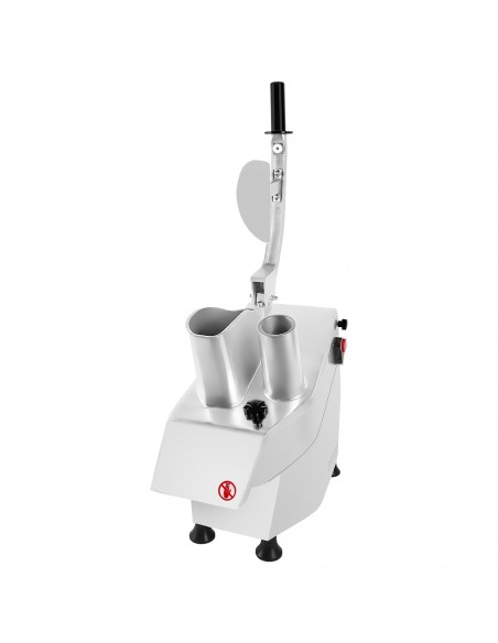 This catering vegetable slicer features two practical slide-in feed chutes, designed to accommodate both elongated vegetables and standard-sized produce. This dual-chute system improves workflow efficiency and reduces the need for pre-cutting, helping kitchens operate faster during busy service periods.