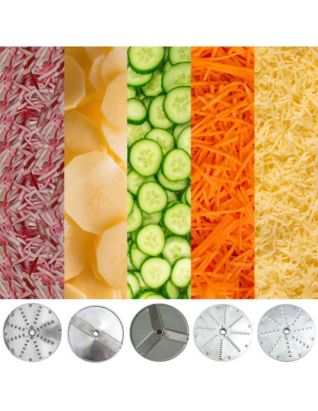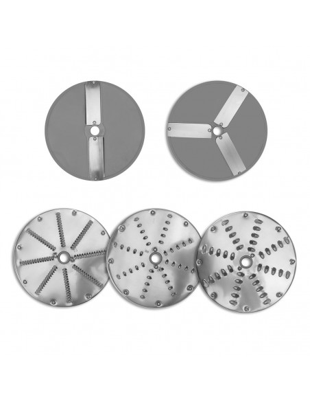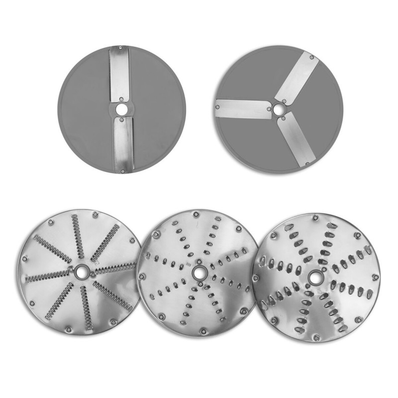 Included discs: 2mm slicing, 4mm slicing, 3mm grating, 4mm friction, 7mm grating, ejector disc