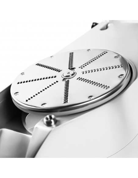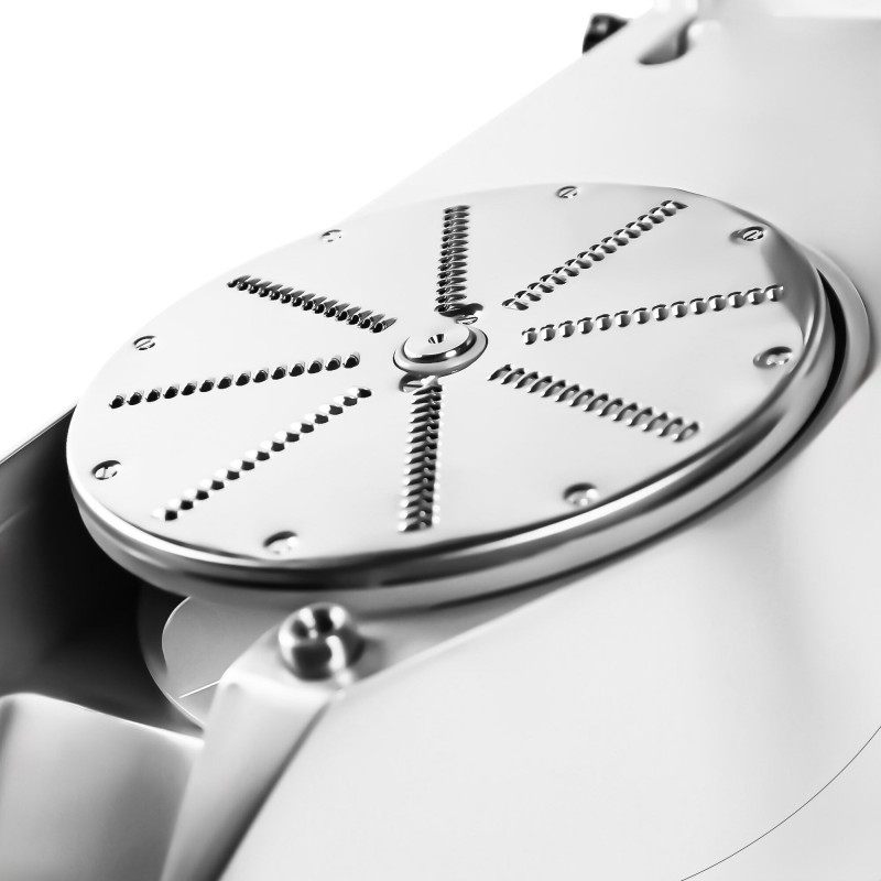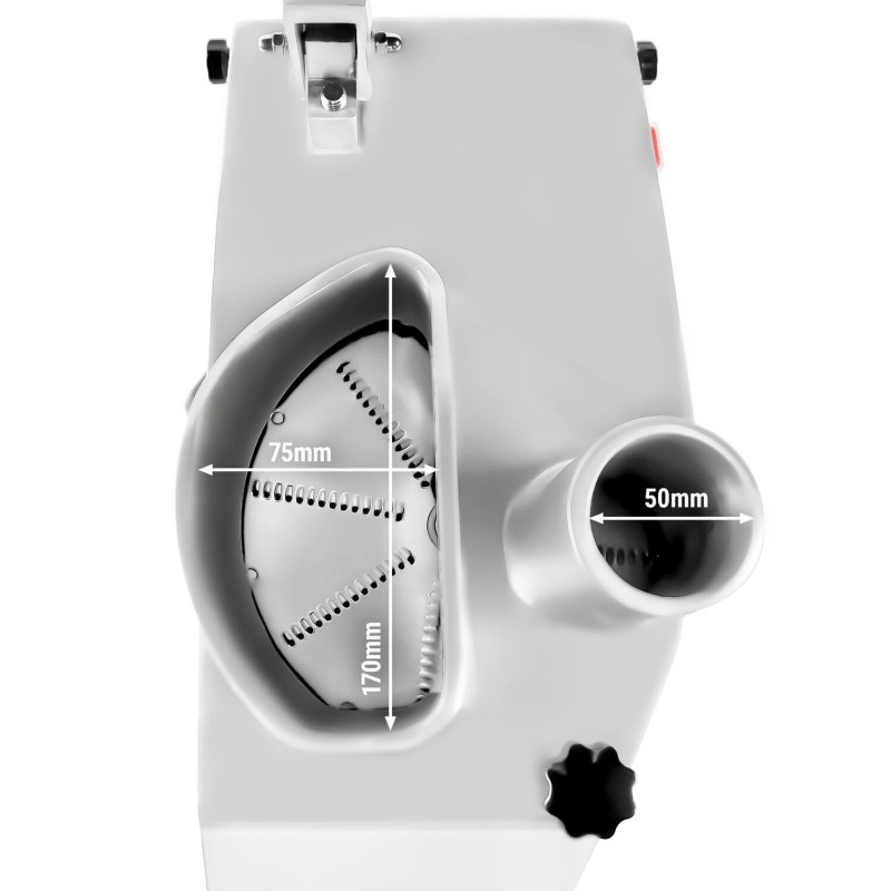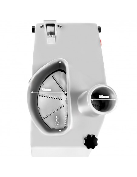 Constructed with a polished and anodized aluminium housing, this vegetable slicer is built for durability and long-term use in professional kitchens. Stainless steel and aluminium components make the unit easy to clean and maintain, supporting high hygiene standards required in UK catering establishments.