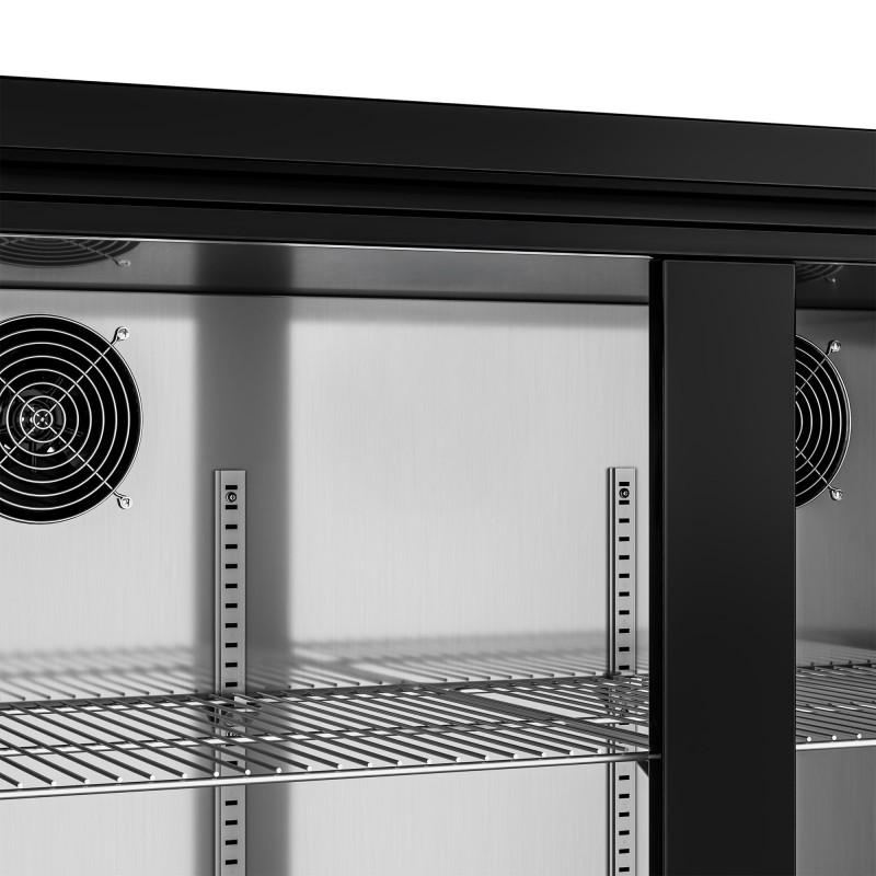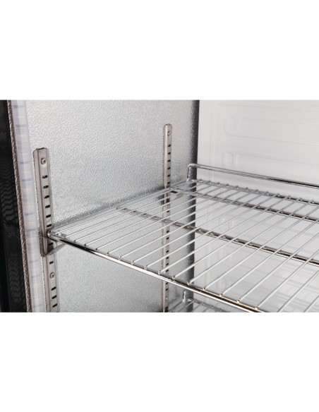 With eight sturdy adjustable shelves and energy-efficient LED lighting, the fridge attractively showcases your bottles and cans to maximise sales, especially in low ambient light bars and pubs. The hinged doors are both double-glazed and lockable, helping to reduce running costs further as well as keeping the contents secure during closing hours. Cleaning is easy too, thanks to the solid commercial construction throughout and rear mounted rollers.