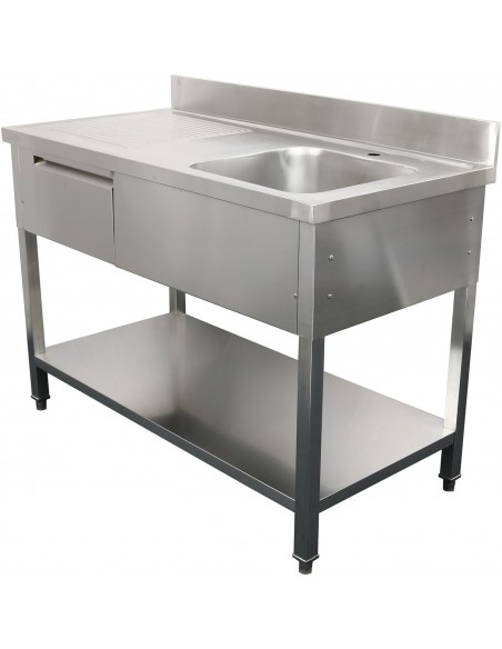 Commercial Sink with 1 drawer Stainless steel 1 bowl Right Bottom shelf Splashback 1500x600x850mm | Stalwart DA-DSA150601DR