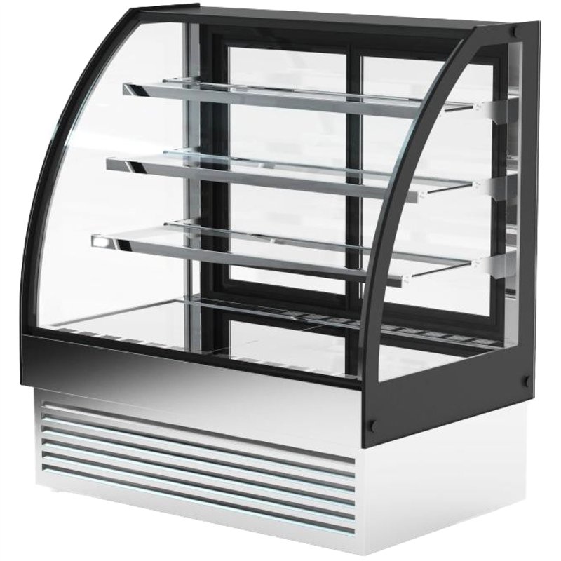 The Stalwart HL700S3 is a professional curved glass chilled display case, designed for bakeries, cafés, patisseries, and other foodservice environments. Featuring an elegant curved front and three illuminated glass shelves, it showcases cakes, desserts, and chilled products attractively while maintaining optimal serving temperatures.