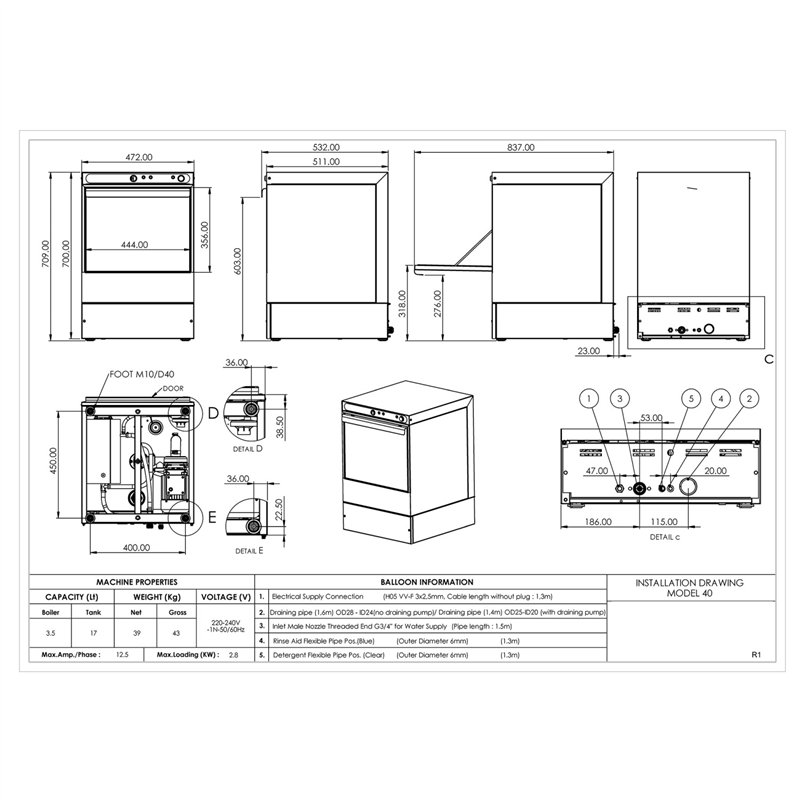 400 mm Basket | Integrated Rinse & Detergent Pumps | Made in Europe