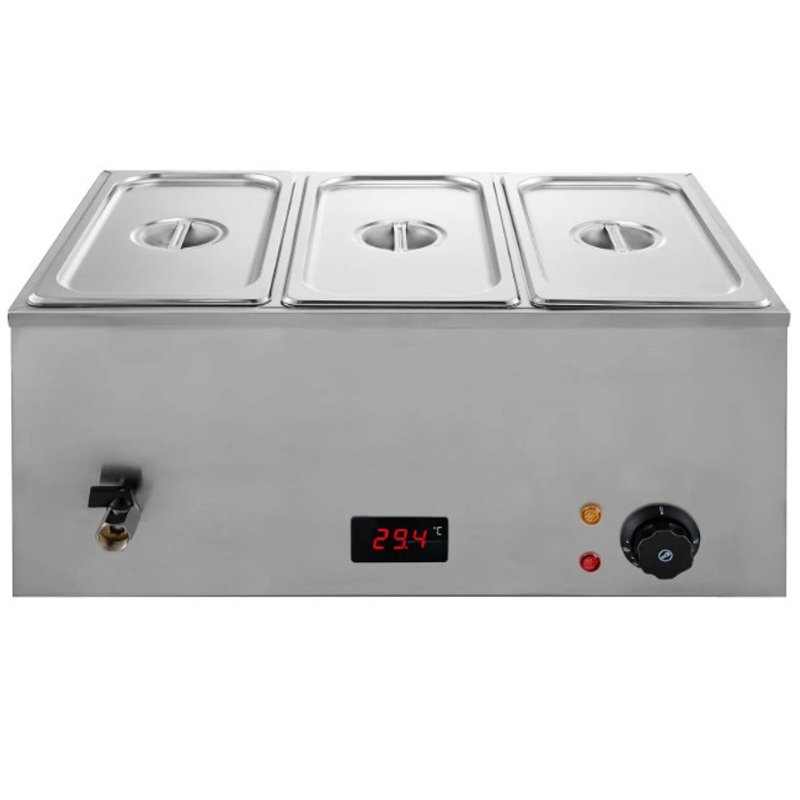 Commercial bain-marie with 3 × 1/3 GN pans and lids