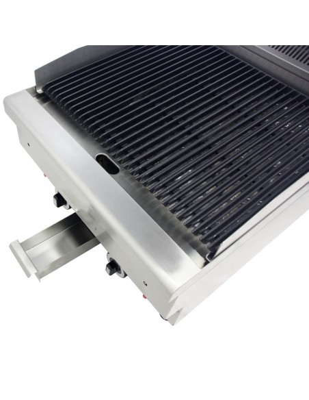 The Stalwart DA-HD600TRH Commercial Gas Lava Rock Grill is designed to deliver powerful performance and authentic chargrilled flavor in professional kitchen environments. Built for durability and consistent results, it is an excellent choice for restaurants, steakhouses, catering operations, and commercial grilling stations.