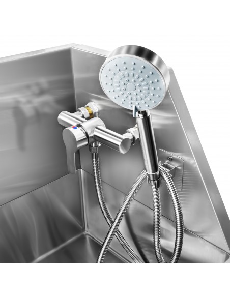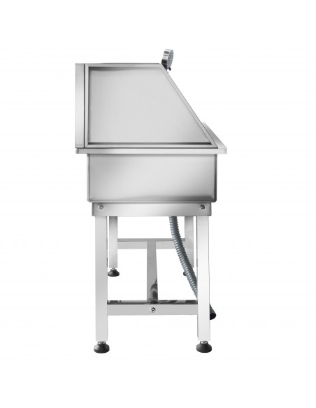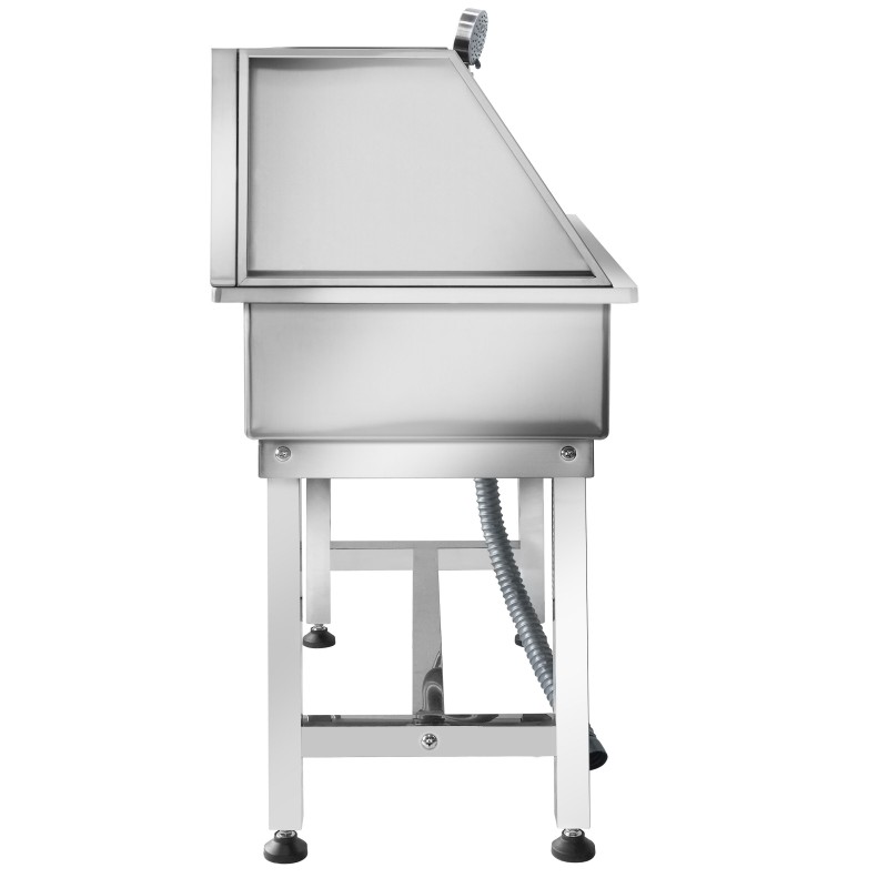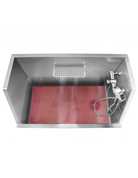 Built with practical features such as pre-drilled hot/cold water connections, excellent sealing to prevent leaks, and a storage grid for shampoos and supplies, this unit is ready to integrate into any grooming or animal care setup.
