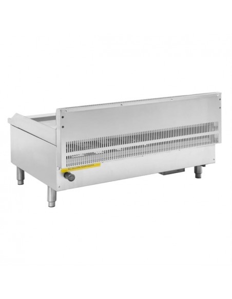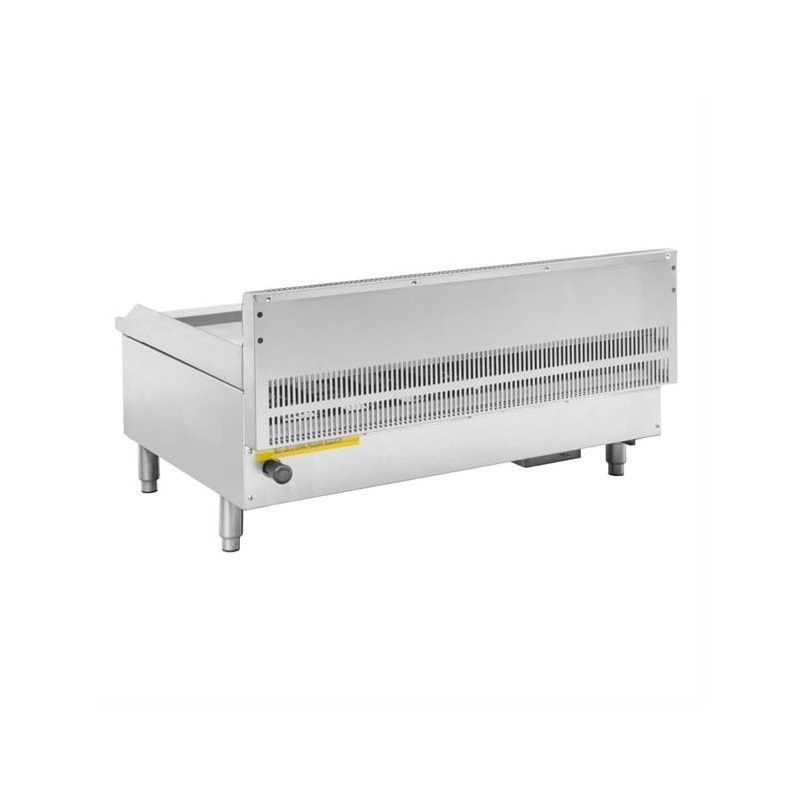 Designed for efficiency and easy cleaning, the griddle includes a stainless steel splash guard to contain splatter and a removable front grease collection tray for quick end-of-service clean-down. Adjustable heavy-duty legs provide a secure and level installation on any counter. The griddle also comes with a conversion kit to LPG, offering flexibility in gas supply.