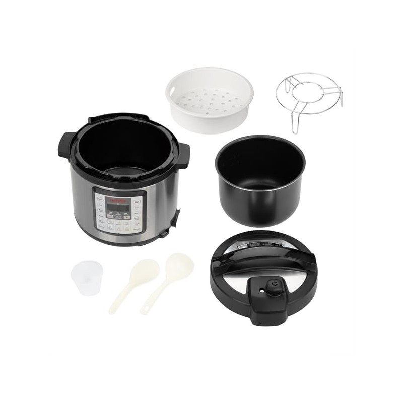 7-in-1 multi-cooker: pressure cooker, sauté pan, steamer, slow cooker, rice cooker, food warmer and yoghurt maker