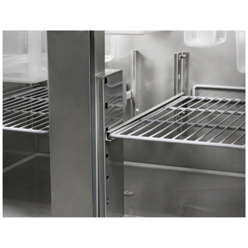 Professional salad chiller with rounded glass top. A perfect addition if you're prepping pizza, sandwiches, wraps or salads. perfect for quickly accessing the ingredients for your menu and extremely hygienic thanks to the built-in sneeze screen. The fridge compartments features a digital control panel and two sturdy adjustable shelves so it's simple to load ingredients and keep them at precise temperatures for extended periods. This refrigeration is designed for everyday commercial use in demanding professional environments.
