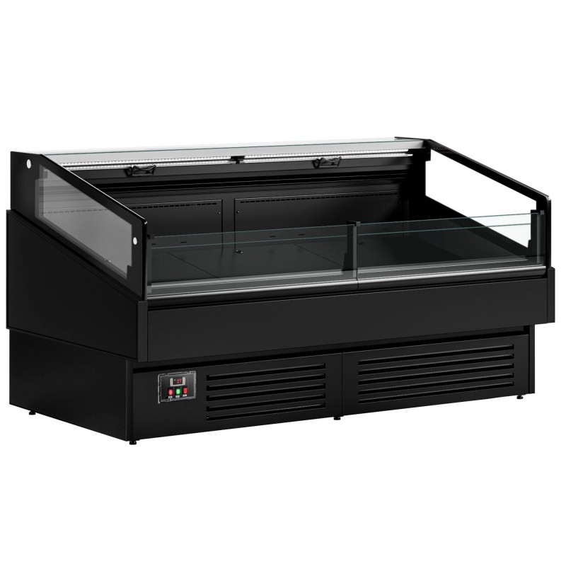 Open Refrigerated Cooling Island – Black Glass Display, 6-Basket Capacity (2°C to 8°C)