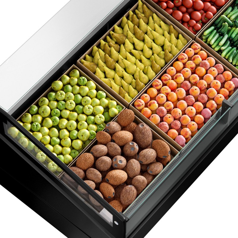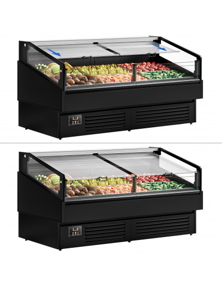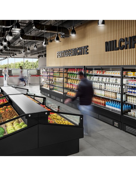 This open refrigerated cooling island is designed for elegant, high-visibility food presentation in supermarkets, convenience stores, delis and self-service retail environments. Featuring a special air curtain cooling system, the unit keeps food fresh while preventing products from drying out, making it ideal for chilled self-service displays.