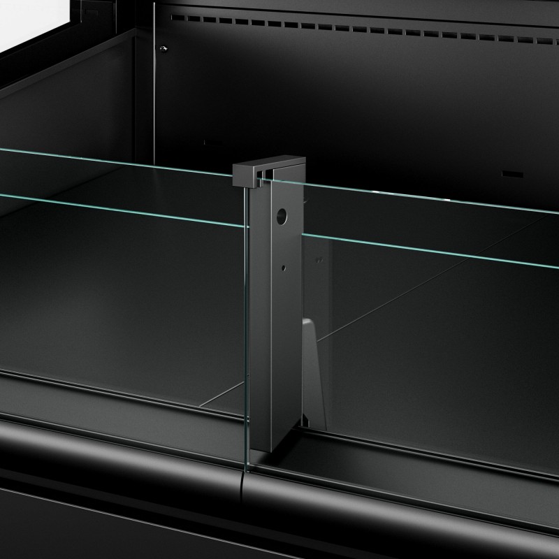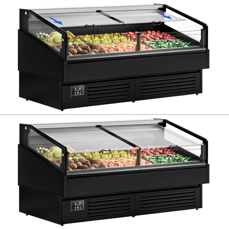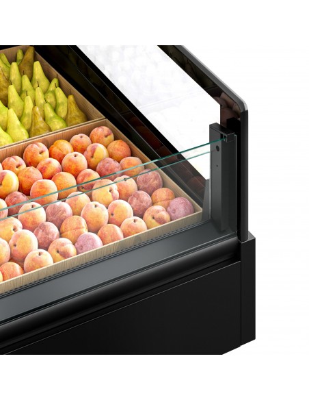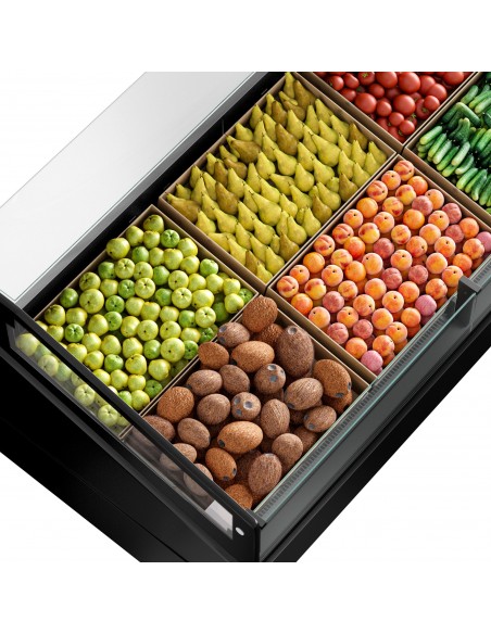 With glass panels on all sides and an open-top design, this cooling island allows customers easy access while maintaining consistent temperatures between 2°C and 8°C. The sleek black finish and large display area enhance product visibility, encouraging impulse purchases and improving merchandising performance.